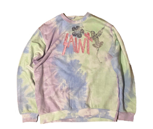 1/1 Embroidered Rhinestone Hummingbird Tie-Dye Crewneck