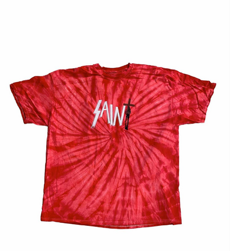 Dr. Plain MD Orange Tie-Dye Rhinestone Skull Tee